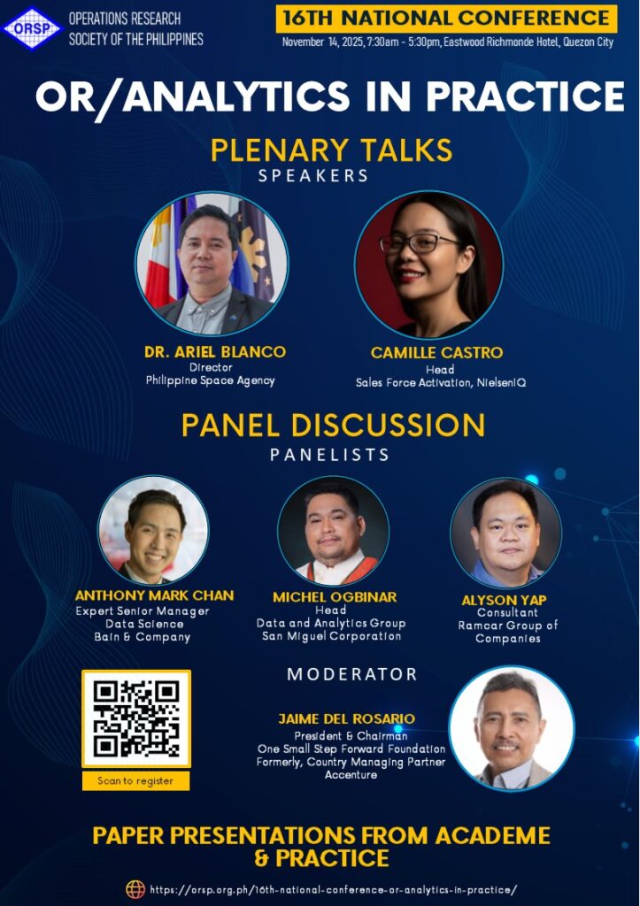 • Cash/Checks should be made payable to the Operations Research Society of the Philippines,Inc. (please do not abbreviate) and deposited at any Banco De Oro branch to Account No. 1510028666